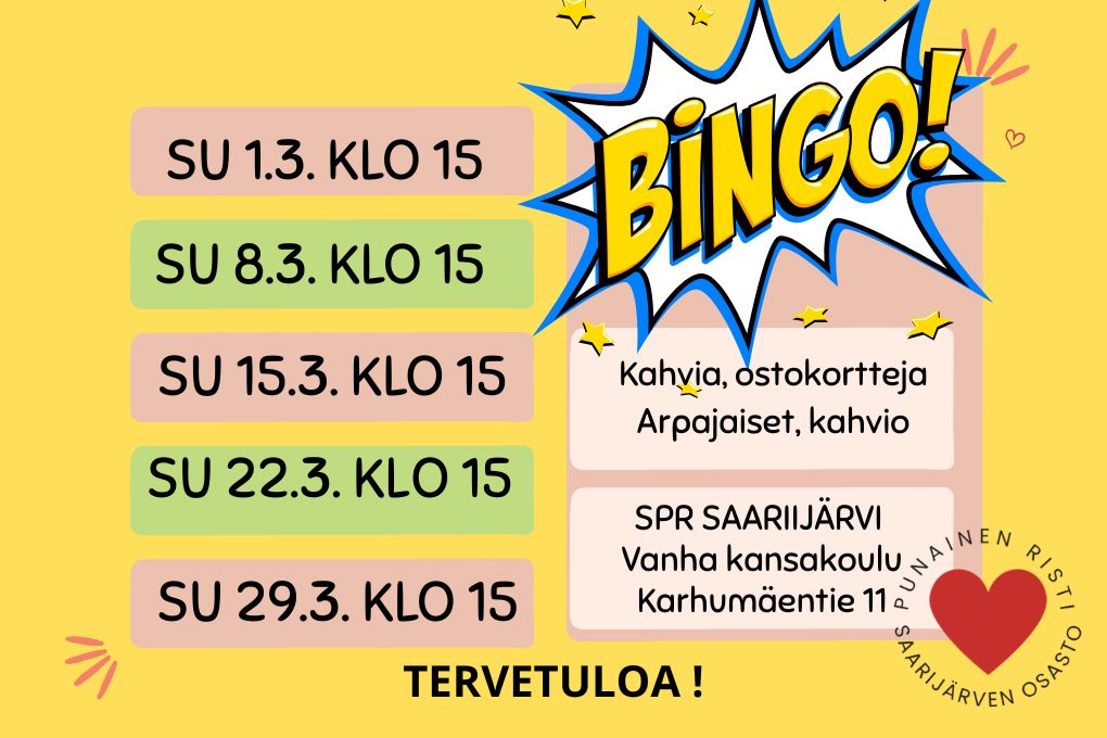 Suosittu BINGO-peli järjestetään sunnuntaisin klo 15.00