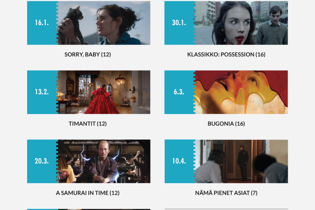 Lisätietoja elokuvista Saarijärven elokuvakerhon sivuilta: https://saarijarvenelokuvakerho.fi/ohjelmisto/