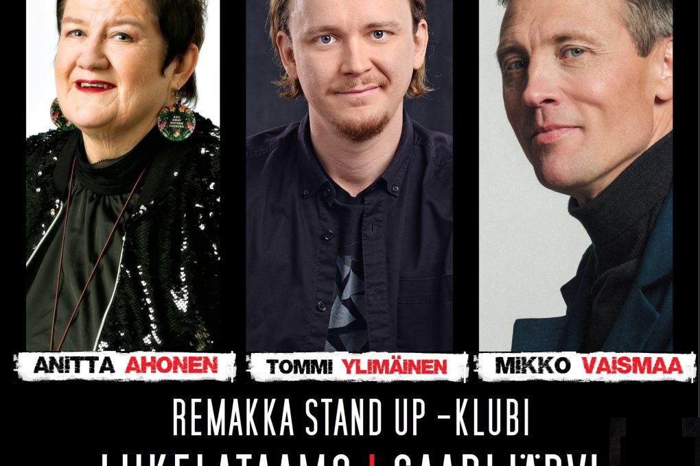 Saarijärven Liikelataamolla nauru raikaa perjantaina 19.9. klo 20 alkaen, kun Remakka Stand Up -klubilla nähdään stand up -koomikot ANITTA AHONEN, TOMMI YLIMÄINEN JA MIKKO VAISMAA! Tämä rautainen kolmen stand up -ammattilaisen kombo toimittaa erittäin jykevät huumorisetit eetteriin, joten tule kokemaan tämä hauskuus livenä!