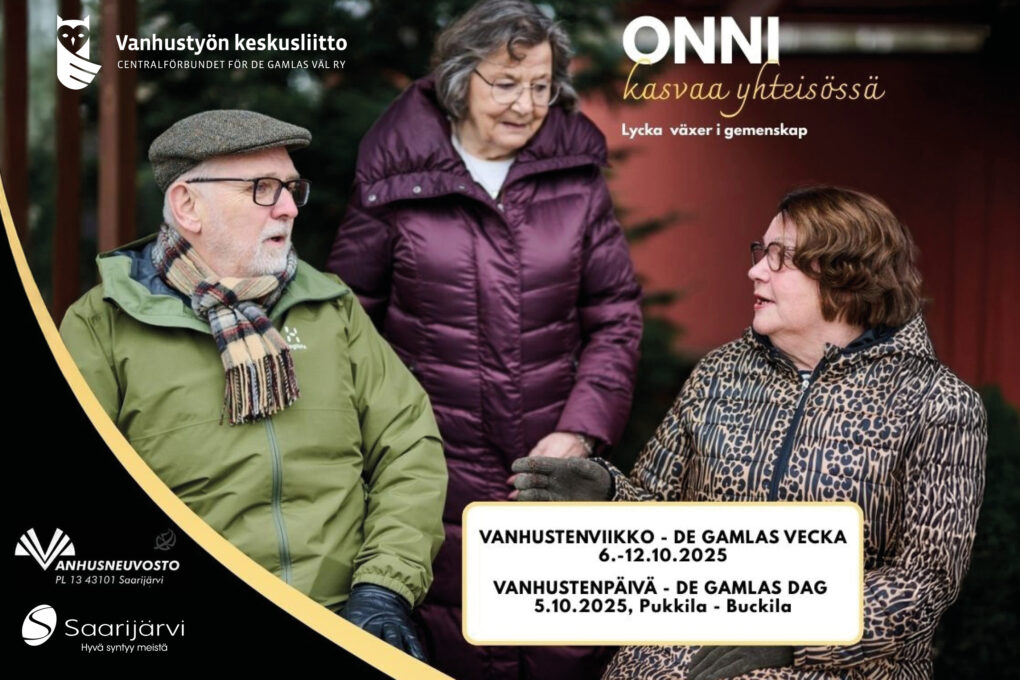 Tänä vuonna Vanhustenviikkoa vietetään 6.-12.10.2025 teemalla Onni kasvaa yhteisössä – Lycka växer i gemenskap.