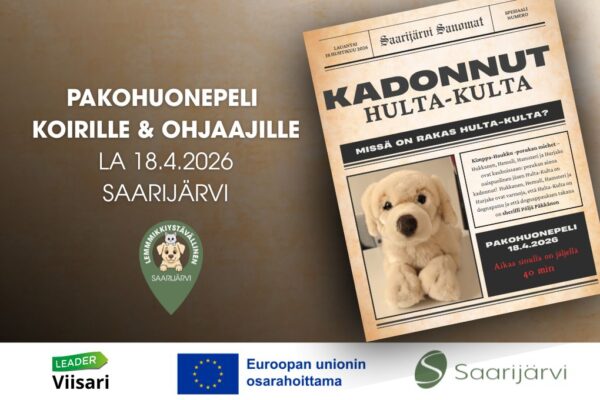 Huuuuikaisevan jännittävä pakohuonepeli KOIRILLE & OHJAAJILLE Saarijärvellä lauantaina 18.4.2026 - osana Saarijärven KOIRANOMISTAJAN KUUKAUTTA!